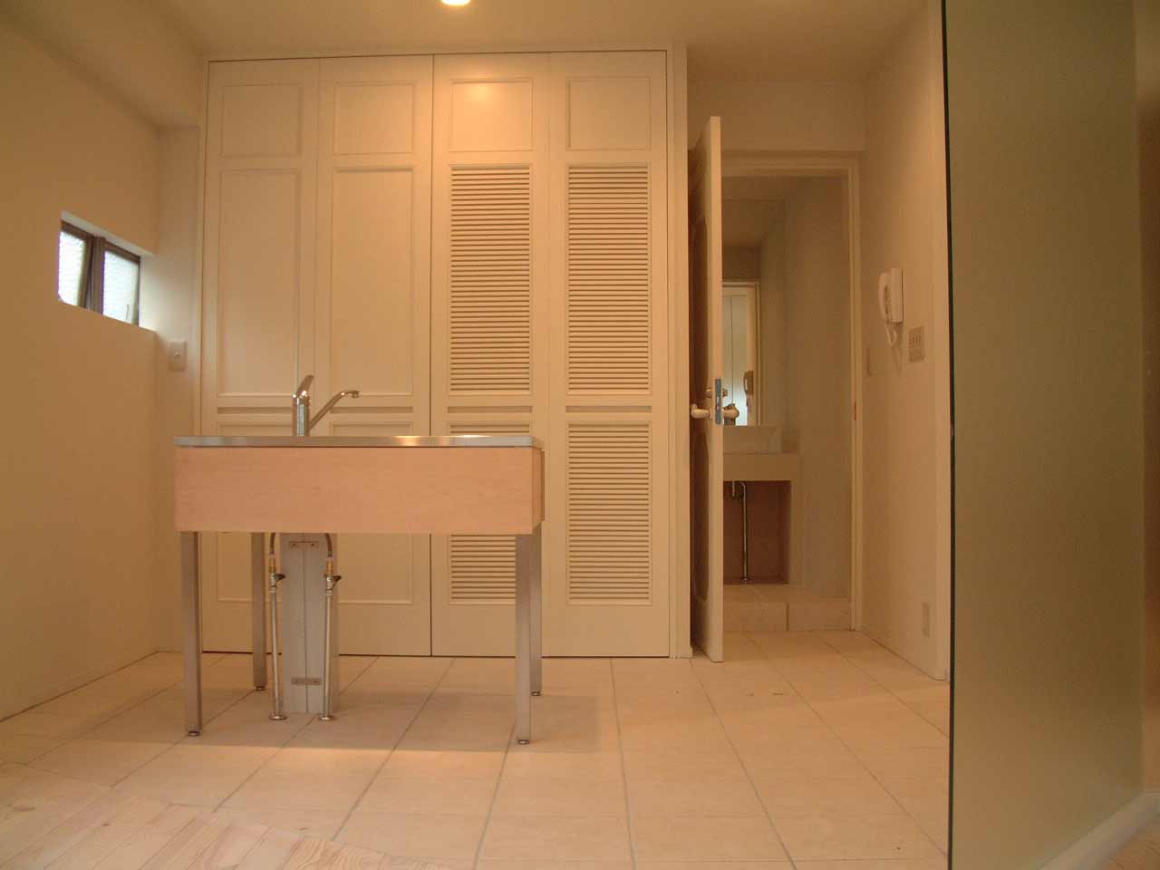 ドアノブ・レトロ照明・鏡・ペーパーホルダーの選択へ、 更には洗面ボウル・シャワー水栓・バスタブなどの水回り設備や、 レンガ貼り・鏡の塗装・黒板塗装・家具の色指定・床のエイジングなどの加工、天吊棚や壁シェルフ、アトリエ長机などの造作、最近ではバーカウンター製作や浴室タイルの指定まで、
